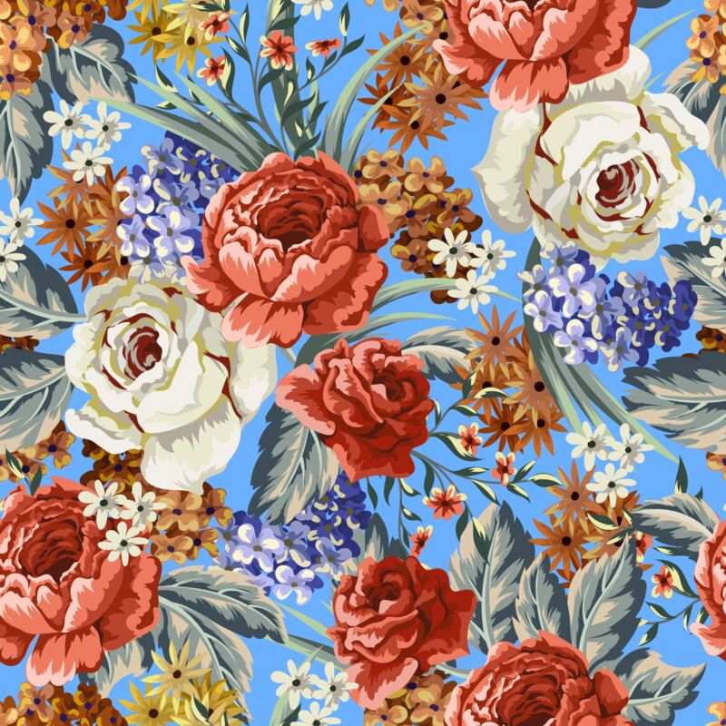 RED WHITE FLOWER ON ROYAL BLUE